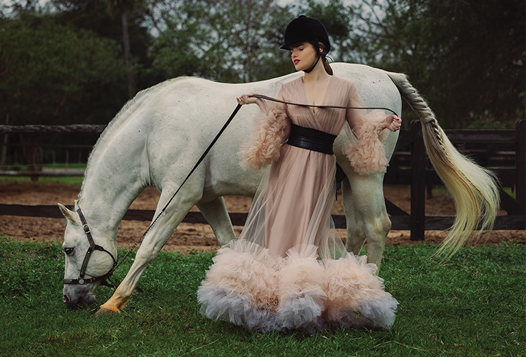En particular, para esta primera parte de la serie —que lleva el nombre Timeless Essence— la colaboración entre Sol y Angelina involucró un admirable trabajo artístico y logístico. Además de la decisión para el vestuario y la locación, también se seleccionaron cuidadosamente los caballos, se transportaron las luces y el equipo desde distintos lugares del mundo para realizar la puesta en Paraguay.