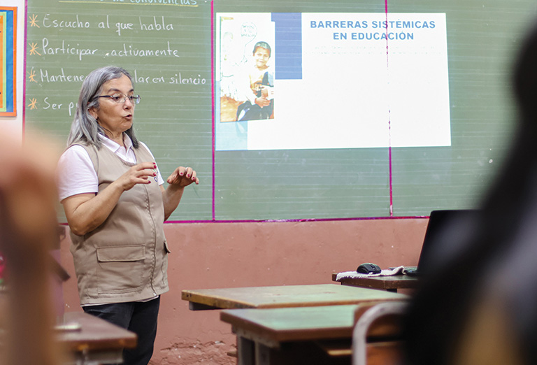 “Buscamos que la intervención sea integral y trabajamos varias aristas. Este sistema articula escuela, familia y comunidad. Por ejemplo, trabajamos para que los espacios sean adecuados para el aprendizaje, instalamos ludotecas para niños de la primera infancia, para el desarrollo de capacidades y habilidades de lectoescritura”, relata Diego Martínez.
