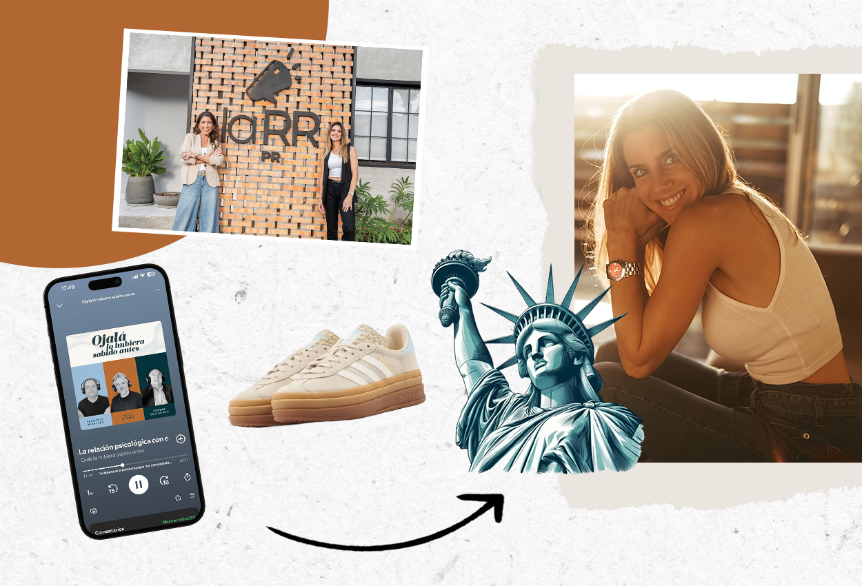 Su Spotify es un reflejo de su versatilidad: puede pasar de los Rolling Stones a Bad Bunny según el mood del día. En su radar de inspiración se encuentran podcasts como La cocina de las marcas y Ojalá lo hubiera sabido antes.