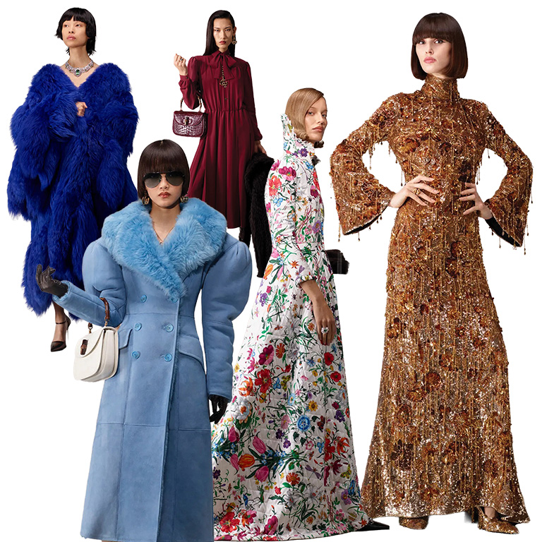 El estreno de Demna Gvasalia en Gucci fue una colección titulada La famiglia; no se dio por medio de un desfile, sino con una presentación en formato lookbook que presentó a 40 personajes vestidos con prendas que rescatan el legado de la firma y apuntan a definir su nueva era creativa. La propuesta transita entre piezas minimalistas y el maximalismo en prendas y alta joyería con un sinfín de detalles dignos de destacar: minivestidos, plumas, lentejuelas, animal print, hombreras, transparencias y sexyness noventero, así como estampados tan reconocibles como el Gucci Flora o el monograma de las GG entrelazadas.