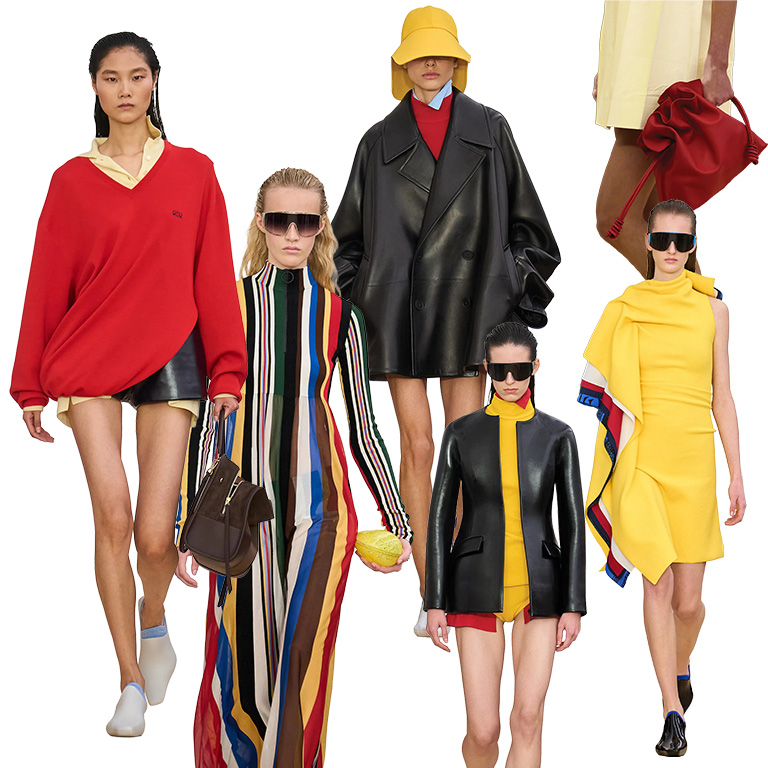 La nueva colección de Loewe, a cargo de Jack McCollough y Lázaro Hernández, rindió homenaje a la herencia de la casa, fundada en Madrid en 1846. Aunque se percibieron ecos de su trabajo en Proenza Schouler, el dúo impuso su sello distintivo. Se presentaron vestidos tipo polo, confeccionados con tiras de piel adheridas, y gabardinas, sacos y piezas estructuradas que incorporaban un efecto scrunch en la parte trasera. También se incluyó un layering de camisas y chaquetas con un aire retro, y vestidos tipo toalla. Una de las sorpresas de esta propuesta fueron los bolsos creados como piezas de vidrio soplado, que requirieron más de 45 horas de trabajo artesanal.