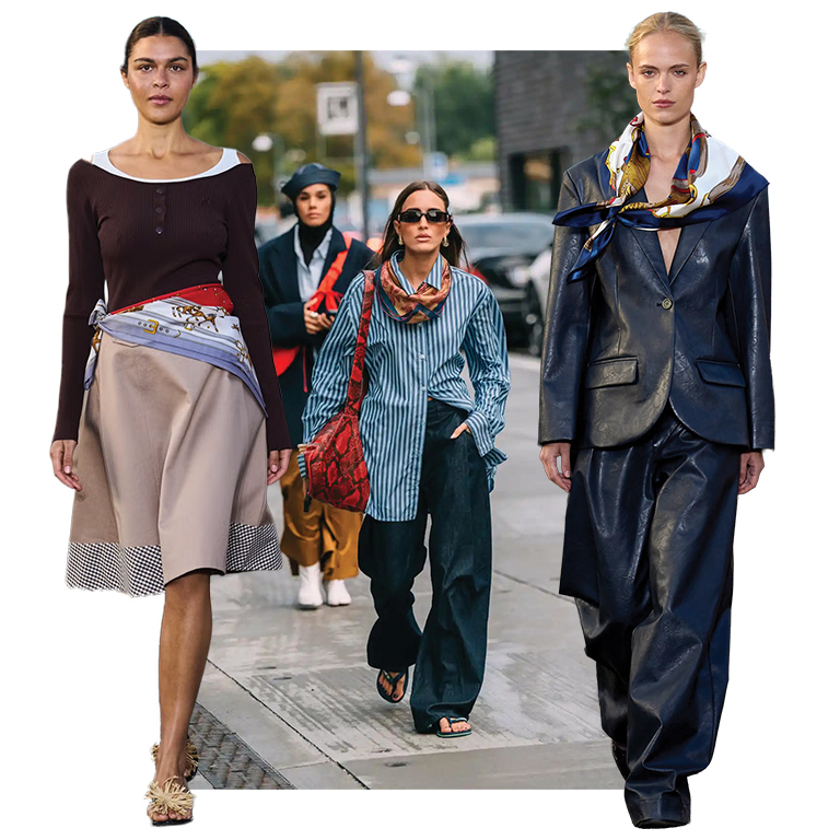 Las pañoletas y las bandanas son un must absoluto en esta temporada. Se llevan en la cabeza, al cuello o de forma inesperada a la cintura, como un minipareo. Este uso se enmarca perfectamente en el estilo danés: es una forma sorpresiva, effortless y que agrega textura y color sin adquirir una prenda nueva.